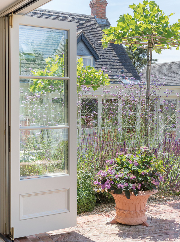 Solid brick sections within the structure afford a greater sense of privacy, whilst the large glazed panels allow light to stream in.
